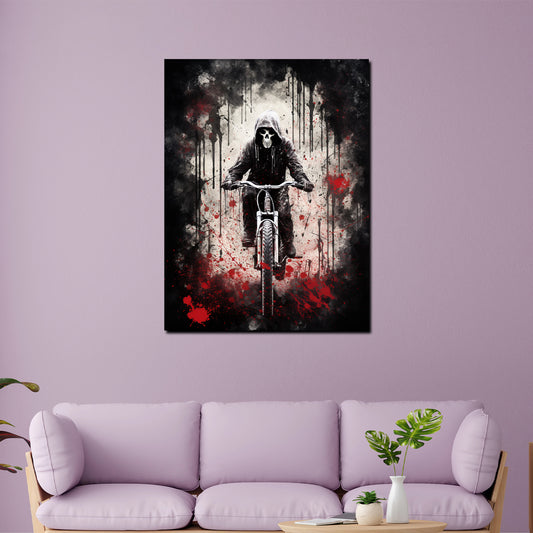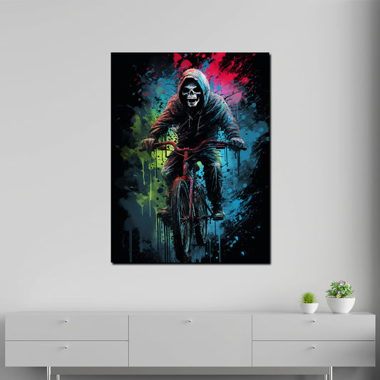 Abstrakt Sensenmann auf Fahrrad Wandbild Kunstwerk