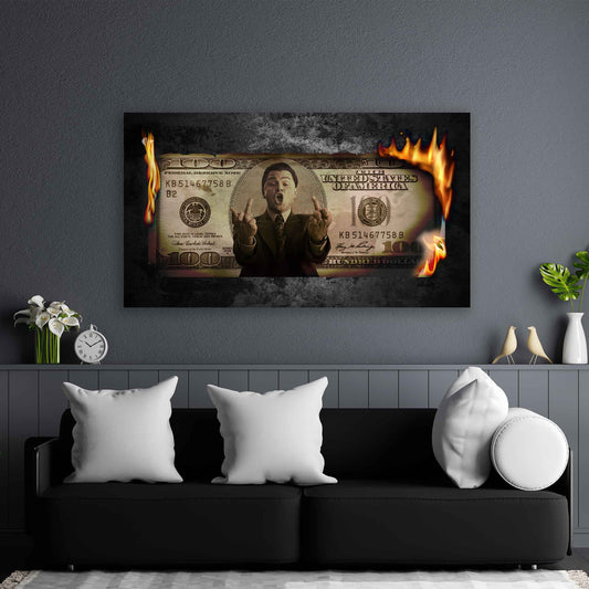 Burning Dollar Geld & Erfolg Leonardo Style Wandbild Kunstwerk