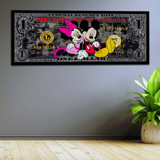 100 Dollar Minnie und Mickey, Comic Wandbild Kunstwerk