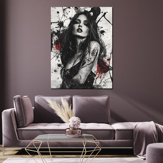 Wunderschöne Frau in schwarz weiß Wandbild Kunstwerk