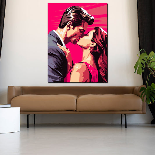 Küssendes Paar Pink Style retro Wandbild Kunstwerk