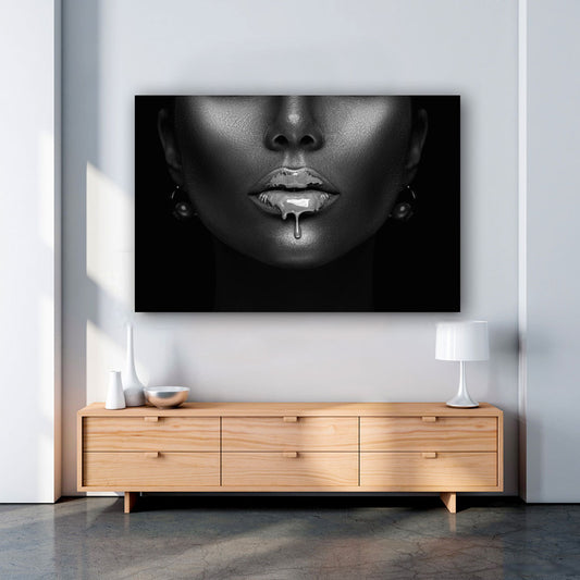 Schöne Frau mit silber Lippen Wandbild Kunstwerk