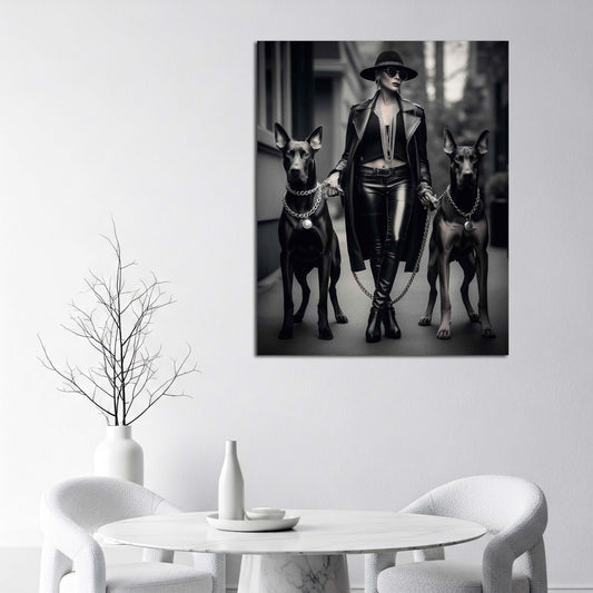 Powerfrau mit Hunden Leder und Ketten Wandbild