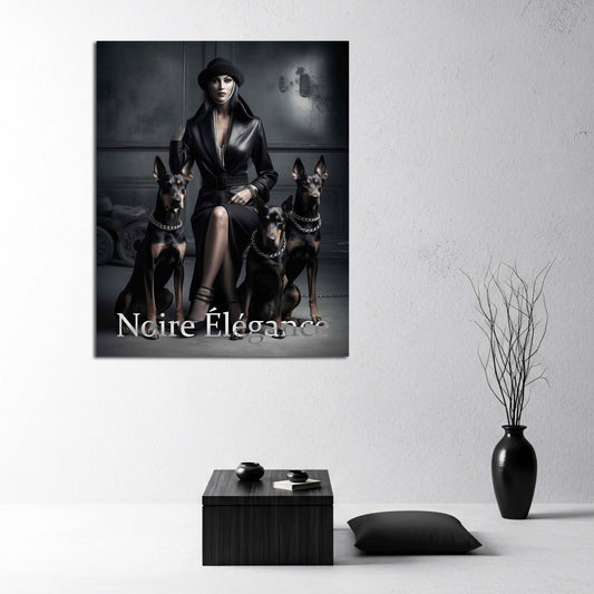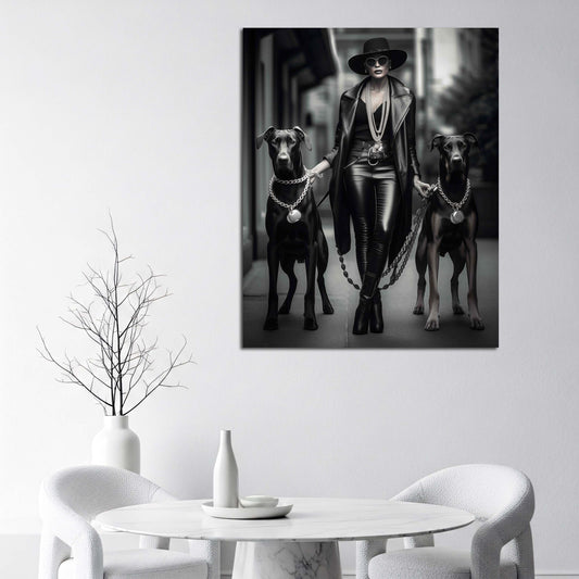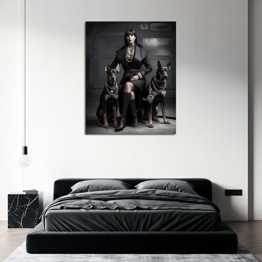 Fashion Diva mit Hunden Noire Élégance schwarz weiß Dominanz und Eleganz vereint Wandbild