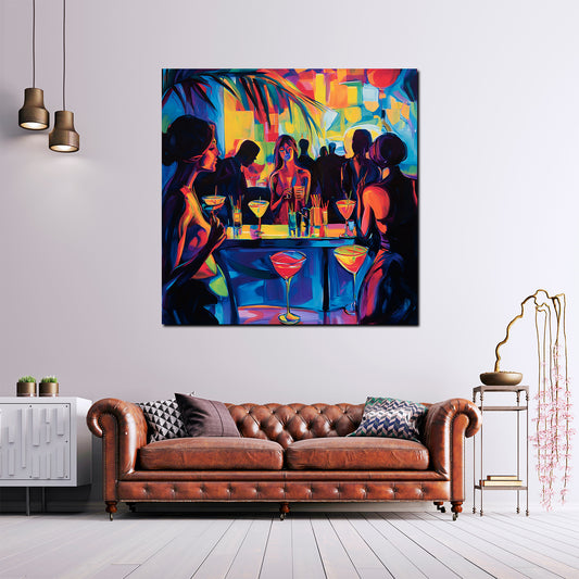 Pop Art Cocktailbar Frauenabend Drinks lebendig bunt Wandbild Kunstwerk