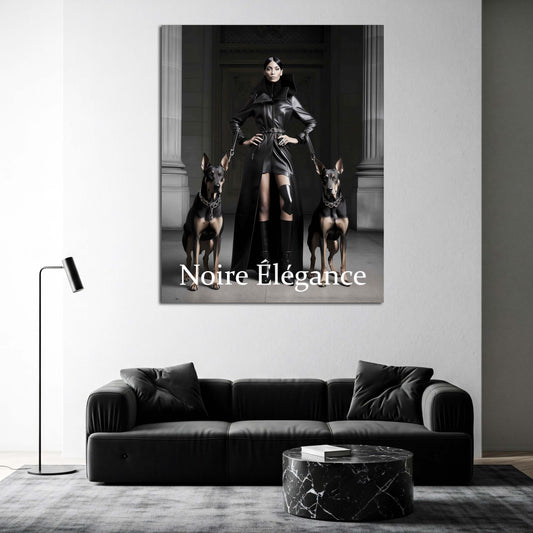 Fashion Diva mit Hunden Noire Élégance schwarz weiß Dominanz und Eleganz vereint Wandbild