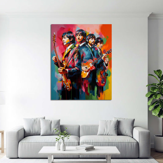 Retro Musikgruppe Beatles mit Gitarren Pop Art Wandbild