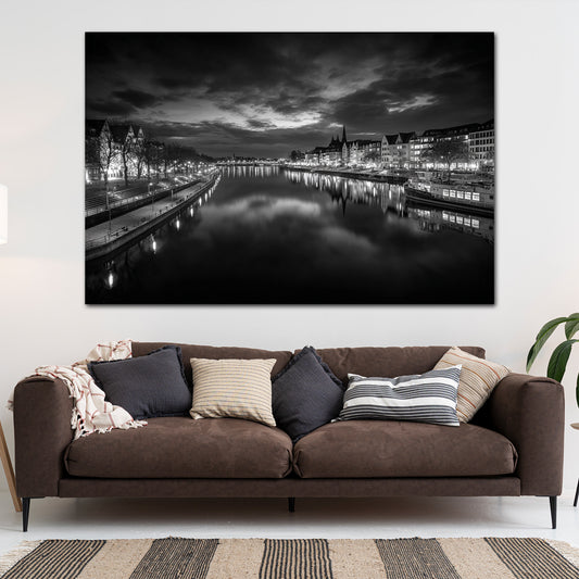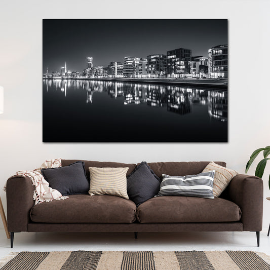 Architektur Bremen Wasserspiegelung schwarz weiß Wandbild
