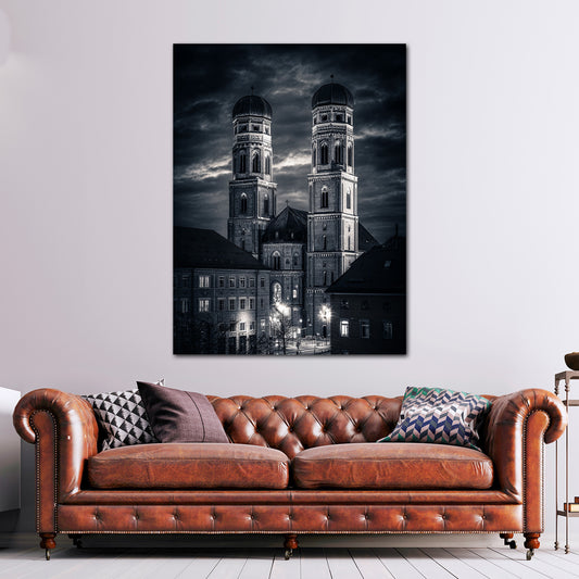 Altstadt Panorama Kirche München schwarz weiß Wandbild
