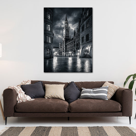 Rathausplatz München Architektur schwarz weiß Wandbild