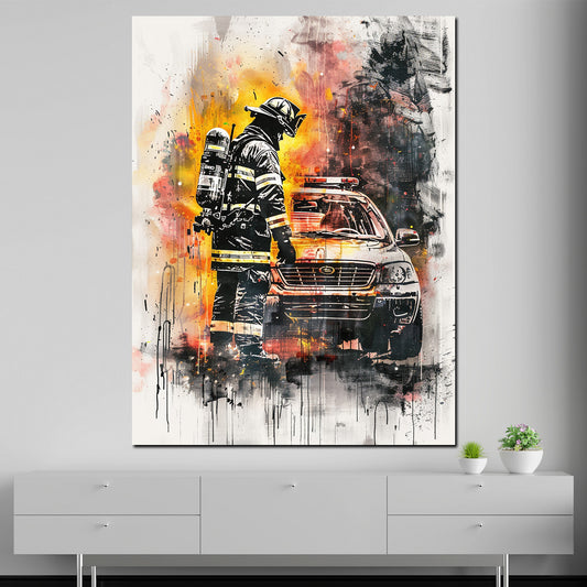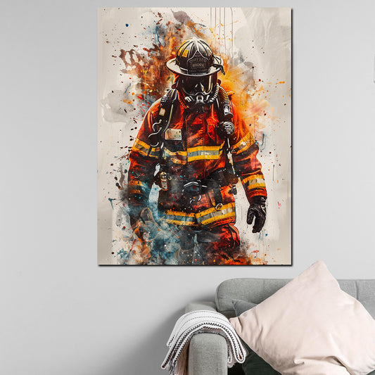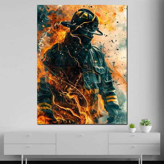 Abstrakt Feuerwehrmann im Einsatz Fire Style Wandbild Kunstwerk