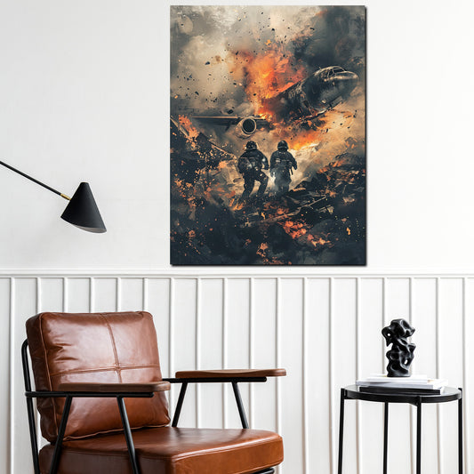 Pop Art abstrakt Feuerwehrmänner im Einsatz Flugzeugabsturz Wandbild Kunstwerk