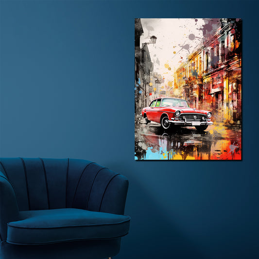 Abstrakt City Auto Oldtimer Wandbild Kunstwerk