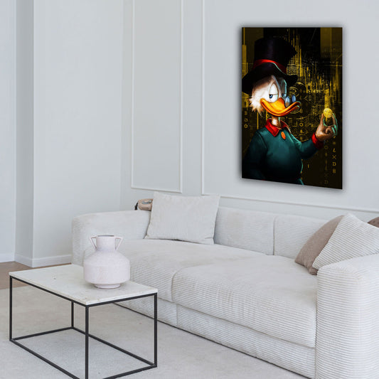 Dagobert Pop Art Bitcoin, Comic Gold Wandbild Kunstwerk