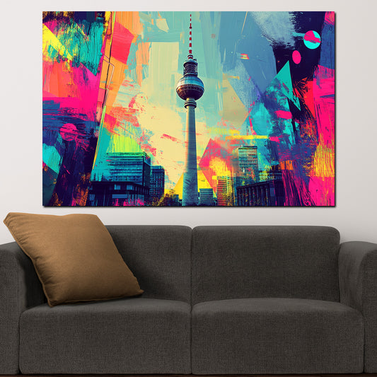 Pop Art Berlin Skyline Fernsehturm Farbe Wandbild Kunstwerk