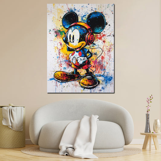 Pop Art Maus mit Kopfhörer Comic Wandbild Kunstwerk