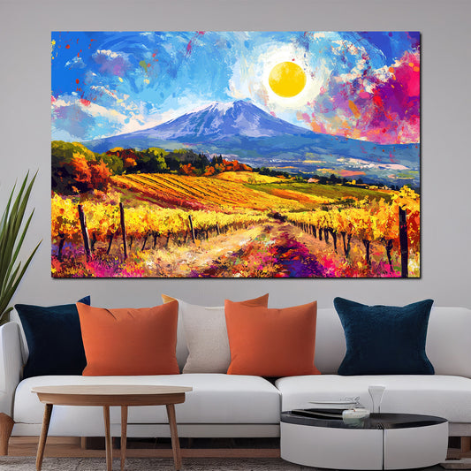 Pop Art Weinlandschaft Herbstfarben Panorama Himmel Sonne Wandbild Kunstwerk