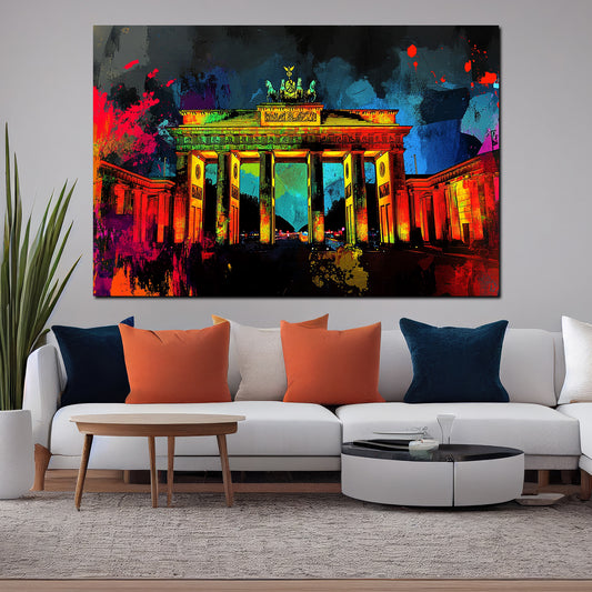 Städte Pop Art Berlin Brandenburger Tor Nachtmotiv Farbe Wandbild Kunstwerk