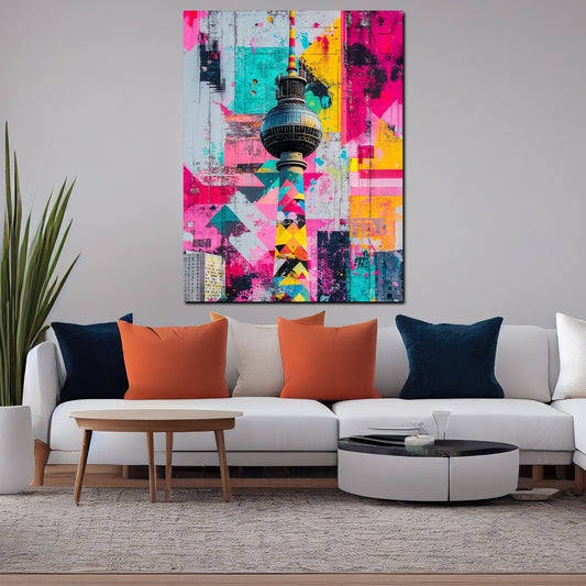 Städte Pop Art Berlin Fernsehturm Farbe Geometrie Wandbild Kunstwerk