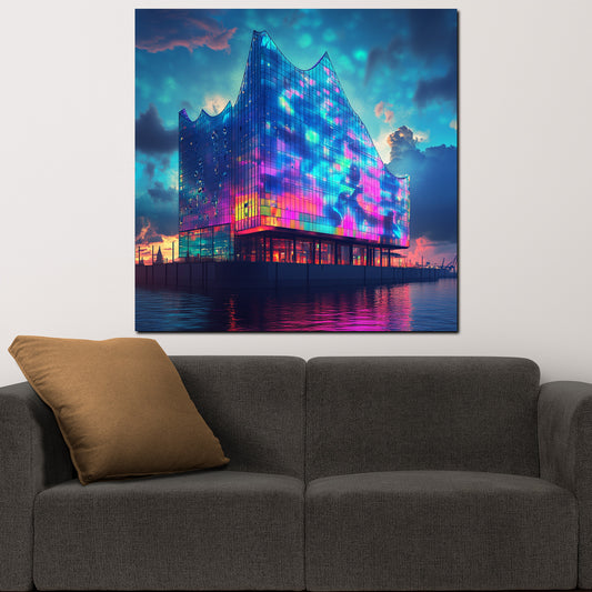 Städte Pop Art Hamburg Elbphilharmonie Glasfassade Abendstimmung Wandbild Kunstwerk