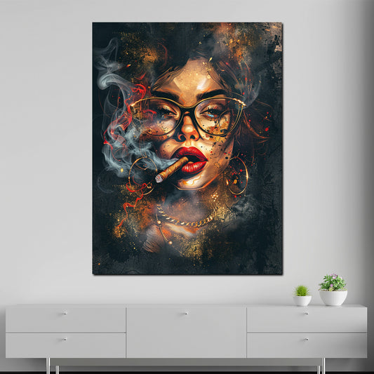 Abstrakt rauchende Frau mit Brille Pop Art Wandbild Kunstwerk