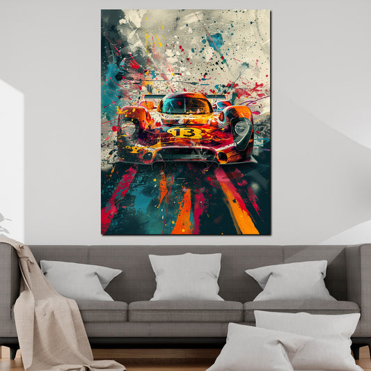Rennwagen Pop Art mit Farbeffekten abstrakt Wandbild Kunstwerk