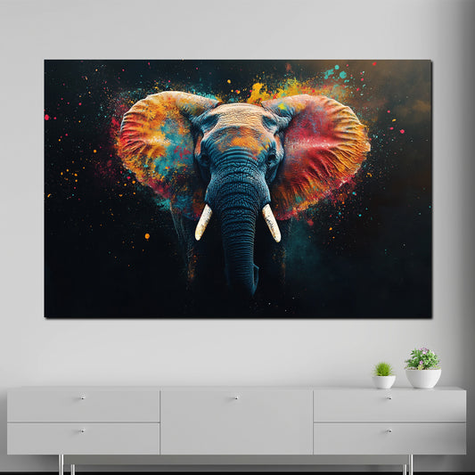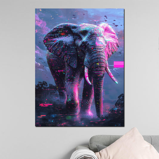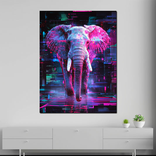 Abstrakt Elefant mit Neon Farben und futuristischem Design Wandbild Kunstwerk