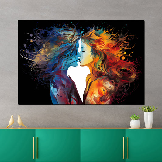 Abstrakt two Girls Kiss Dark Wandbild Kunstwerk
