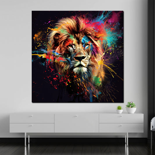 Farbenfroher Löwe mit dynamischen Farben Wandbild Kunstwerk