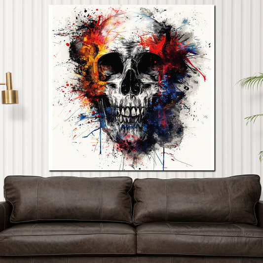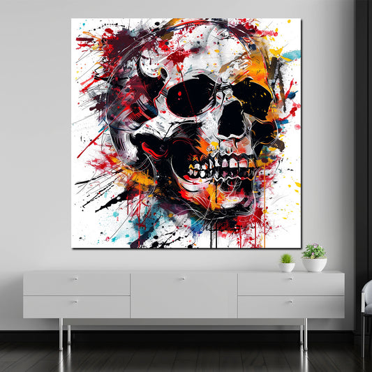 Abstrakt farbenfroher Schädel mit Farbspritzern Wandbild Kunstwerk