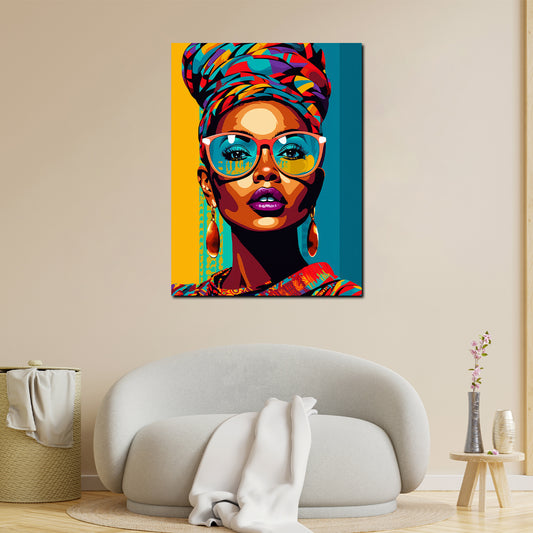 Street Art Frau mit Turban und Sonnenbrille Wandbild Kunstwerk