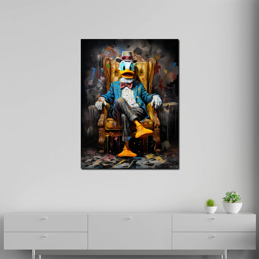 Comic Duck im Sessel, Motivation Geldregen Wandbild Kunstwerk