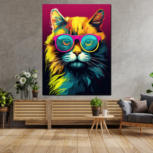 Pop Art Katze mit Sonnenbrille Wandbild Kunstwerk