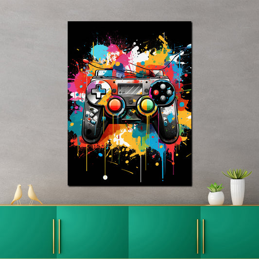 Pop Art Gamepad Controller Splash Wandbild Kunstwerk