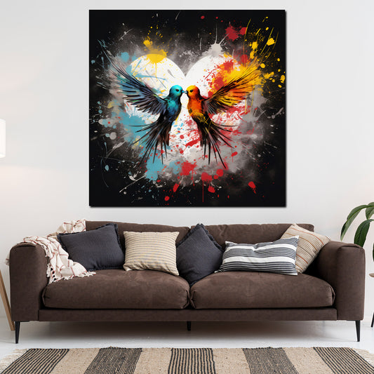 Pop Art 2 Vögel Herz Love Wandbild Kunstwerk