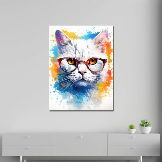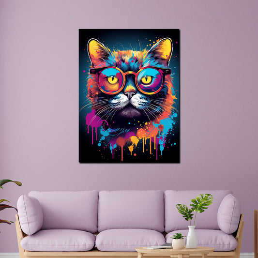 Pop Art Katze mit Brille Colour Splash Wandbild Kunstwerk