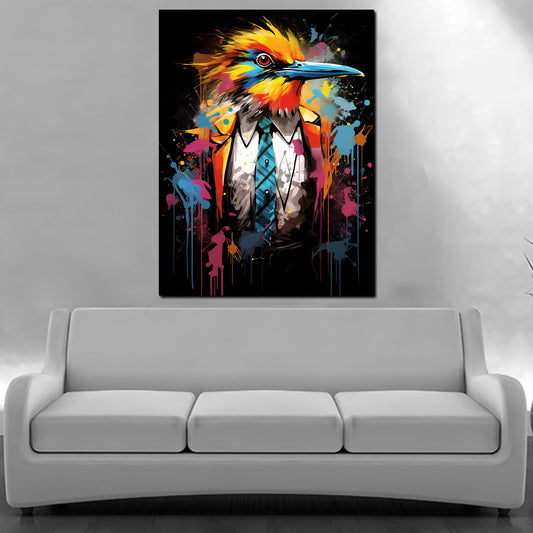 Pop Art Vogel im Anzug Dark Mode Wandbild Kunstwerk