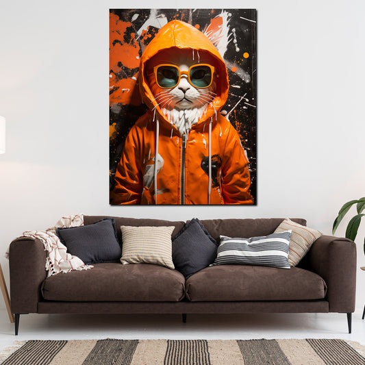 Pop Art Coole Katze mit Jacke und Sonnenbrille Wandbild Kunstwerk