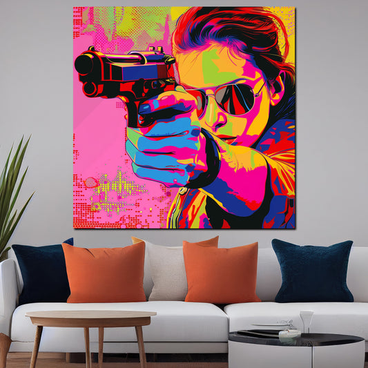 Pop Art Frau Shooting Beauty Wandbild Kunstwerk