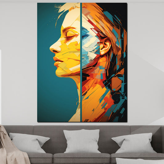 Abstrakt Gesicht Frau zweigespalten Wandbild Kunstwerk