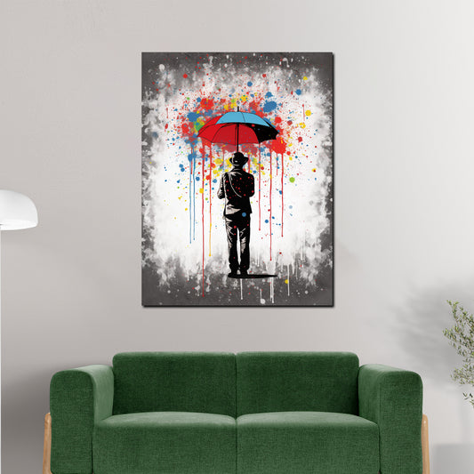 Street Art Mann mit Regenschirm Abstract Style Wandbild Kunstwerk