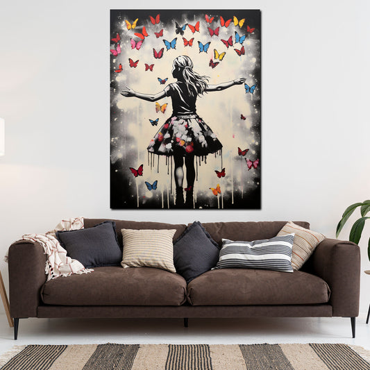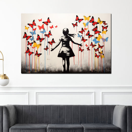 Street Art Mädchen mit Schmetterlinge Wandbild Kunstwerk