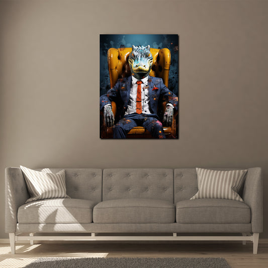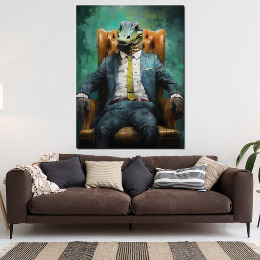 Abstrakt Krokodil im Anzug sitzend, Tiere im Anzug Wandbild Kunstwerk