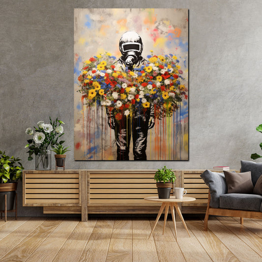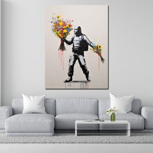 Abstrakt Street Art Mann mit Blumen Wandbild Kunstwerk