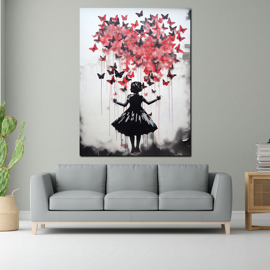 Abstrakt kleines Mädchen Herz aus Schmetterlinge Wandbild Kunstwerk