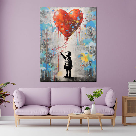 Street Art Mädchen mit Herz Luftballon Abstract Style Wandbild Kunstwerk