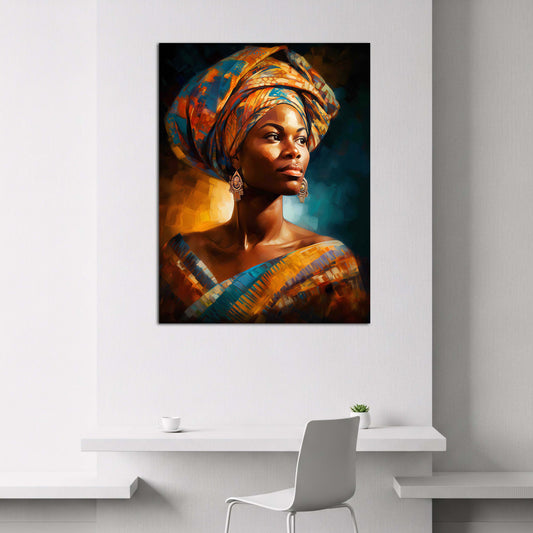 Afrikanische Frau Porträt mit Kopfschmuck Stolz Eleganz Wandbild