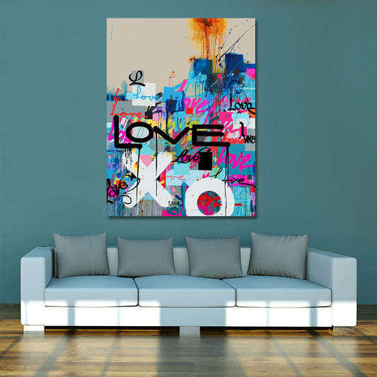 Street Art Herz und Happiness Motiv in lebhaften Farben Wandbild Kunstwerk