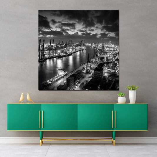 Hamburg Skyline Hafen schwarz weiß Wandbild Kunstwerk