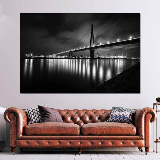Hafenbrücke Hamburg schwarz weiß Elbe Nachtaufnahme Wandbild